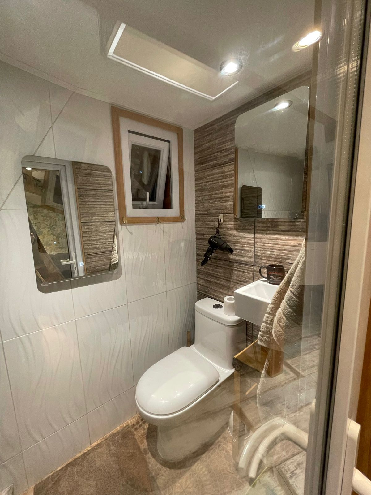 Diseñada para 3 personas, la cabaña cuenta con una cama matrimonial en el primer nivel y una cama individual en el segundo, además de un baño completo y una cocina equipada.